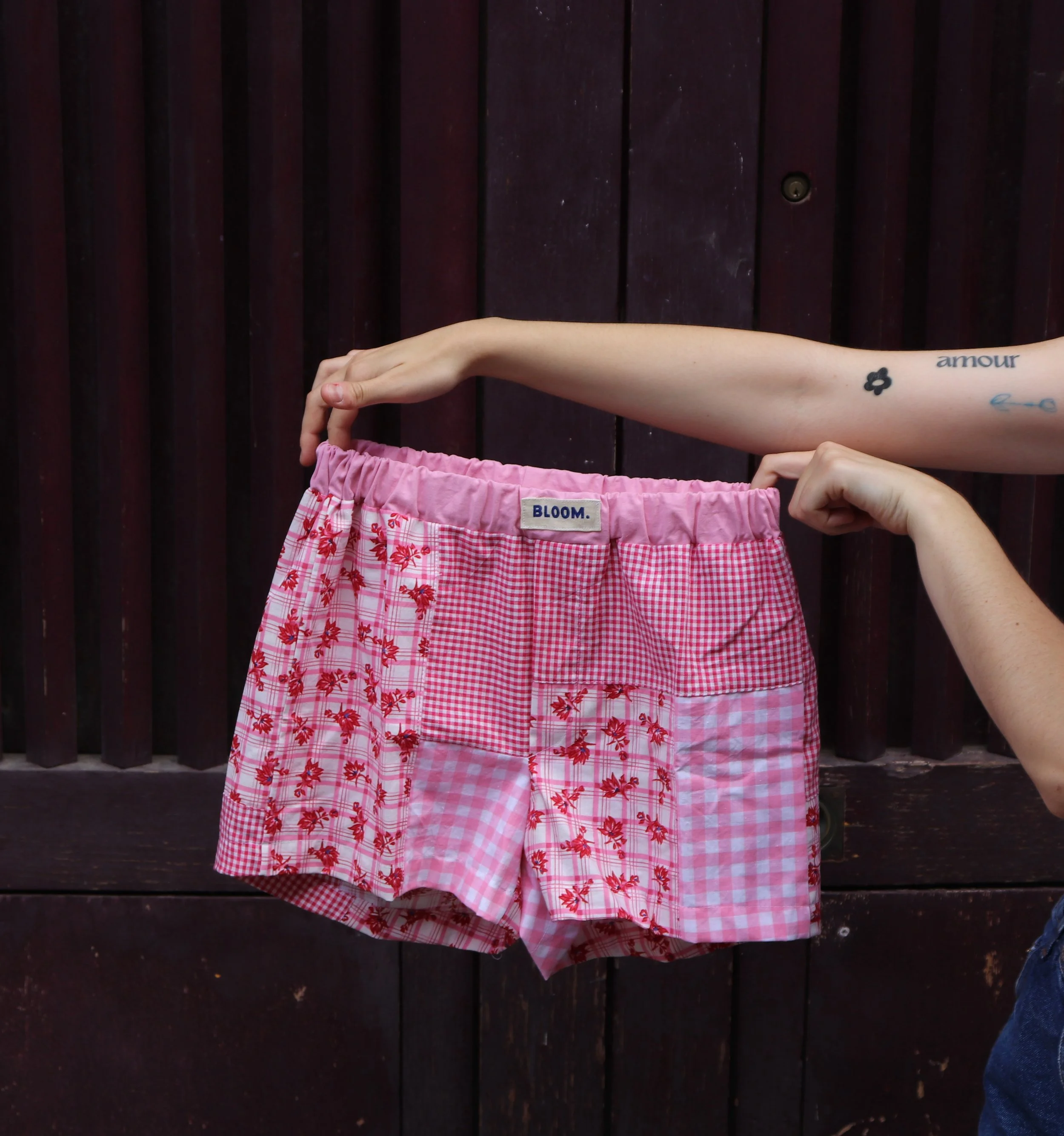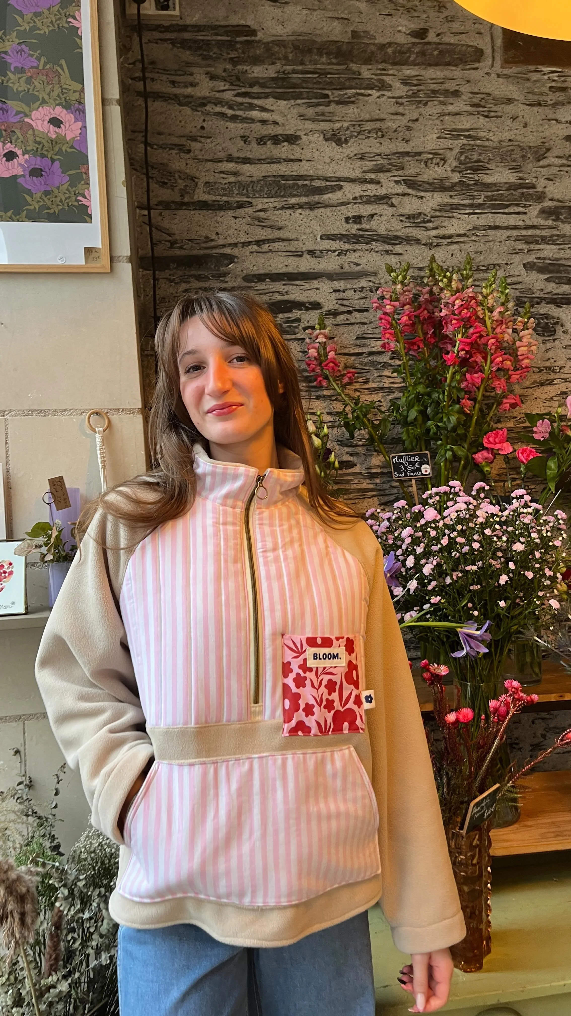 Chaque création Bloom a été confectionnée avec amour par Fiona, dans son atelier situé à Angers (49). Les matières utilisées sont issues de la seconde main et sont chinées en recyclerie, favorisant ainsi une consommation locale et une mode plus durable.